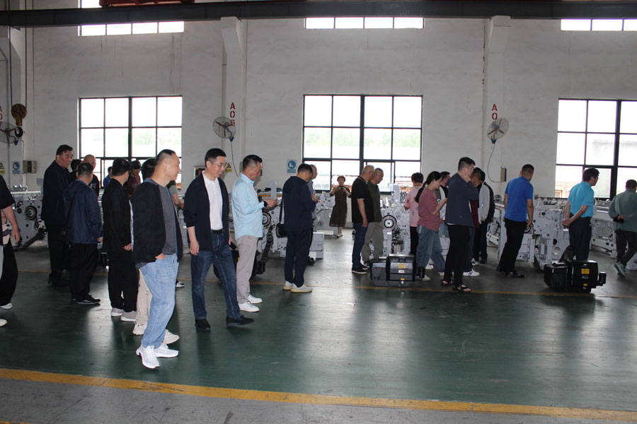 同時,來賓詳細參觀了天一紅旗紡機產品,尤其是自主創新研發的產品HQF001共軛凸輪打緯噴氣織機、噴水織機給予了高度認可。在李總的詳細講解下,商會一行深入生產一線,了解天一紅旗產品管控及質量標準,對精準管理和高效產能給予成分肯定。