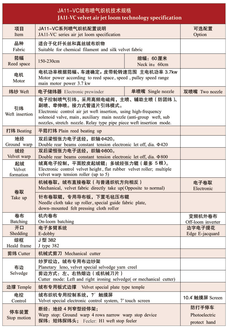 JA11-VC絨布專用高檔噴氣織機(jī)是青島天一集團(tuán)紅旗紡織機(jī)械有限公司經(jīng)過(guò)多年研發(fā)專用于絨布織造的一種特種噴氣織機(jī),經(jīng)過(guò)用戶使用,在開(kāi)機(jī)效率、運(yùn)轉(zhuǎn)速度、織造質(zhì)量、智能操作等方面都達(dá)到較為理想的效果,是絨布織造行業(yè)更新?lián)Q代的理想產(chǎn)品。